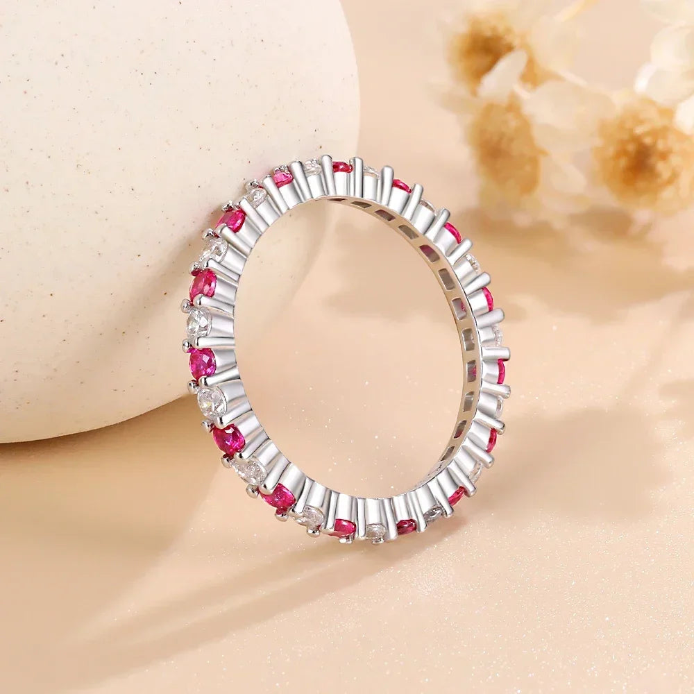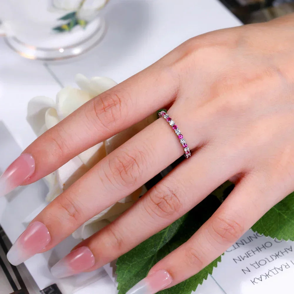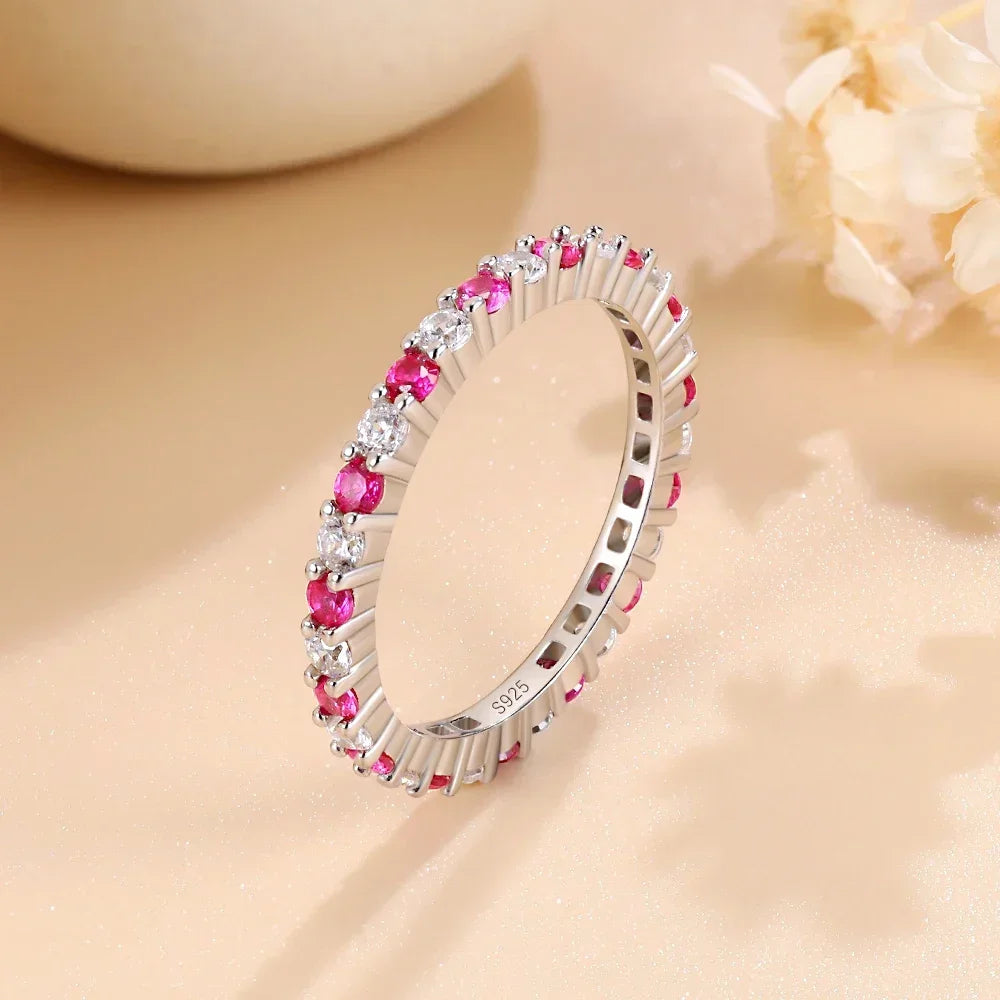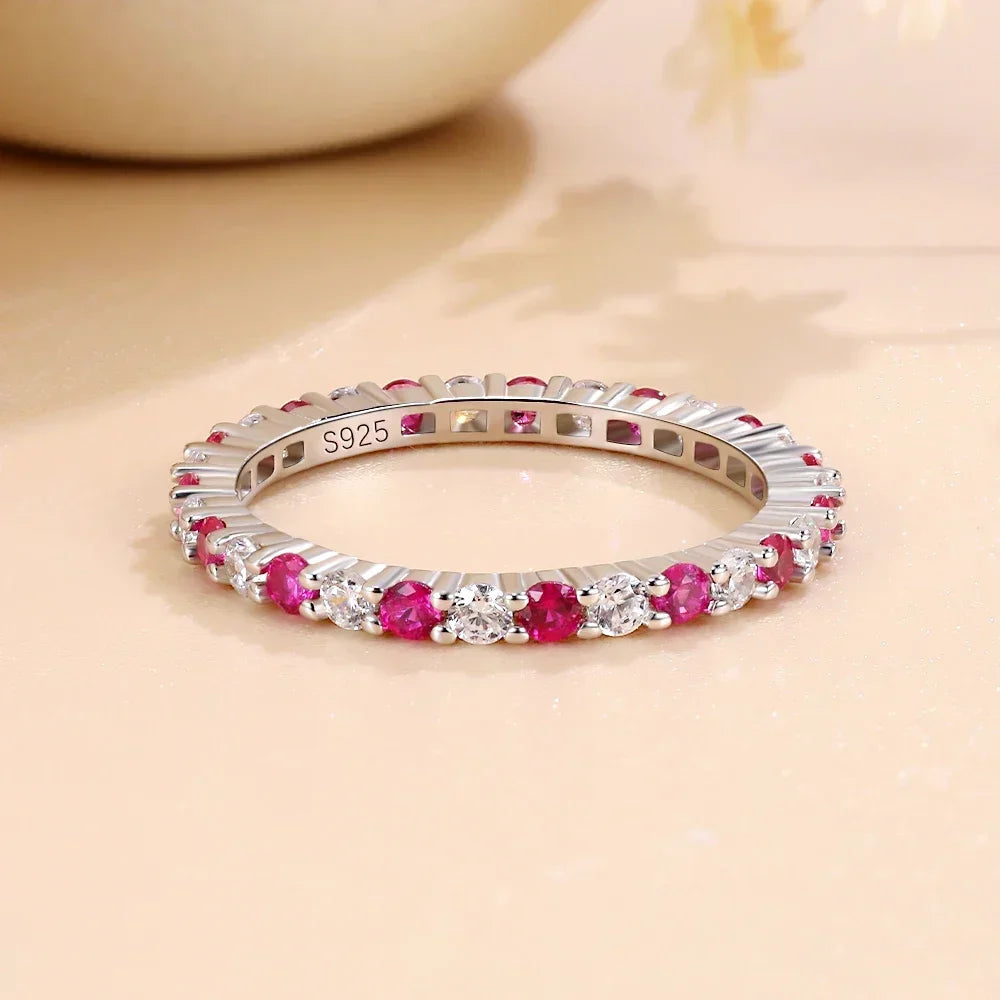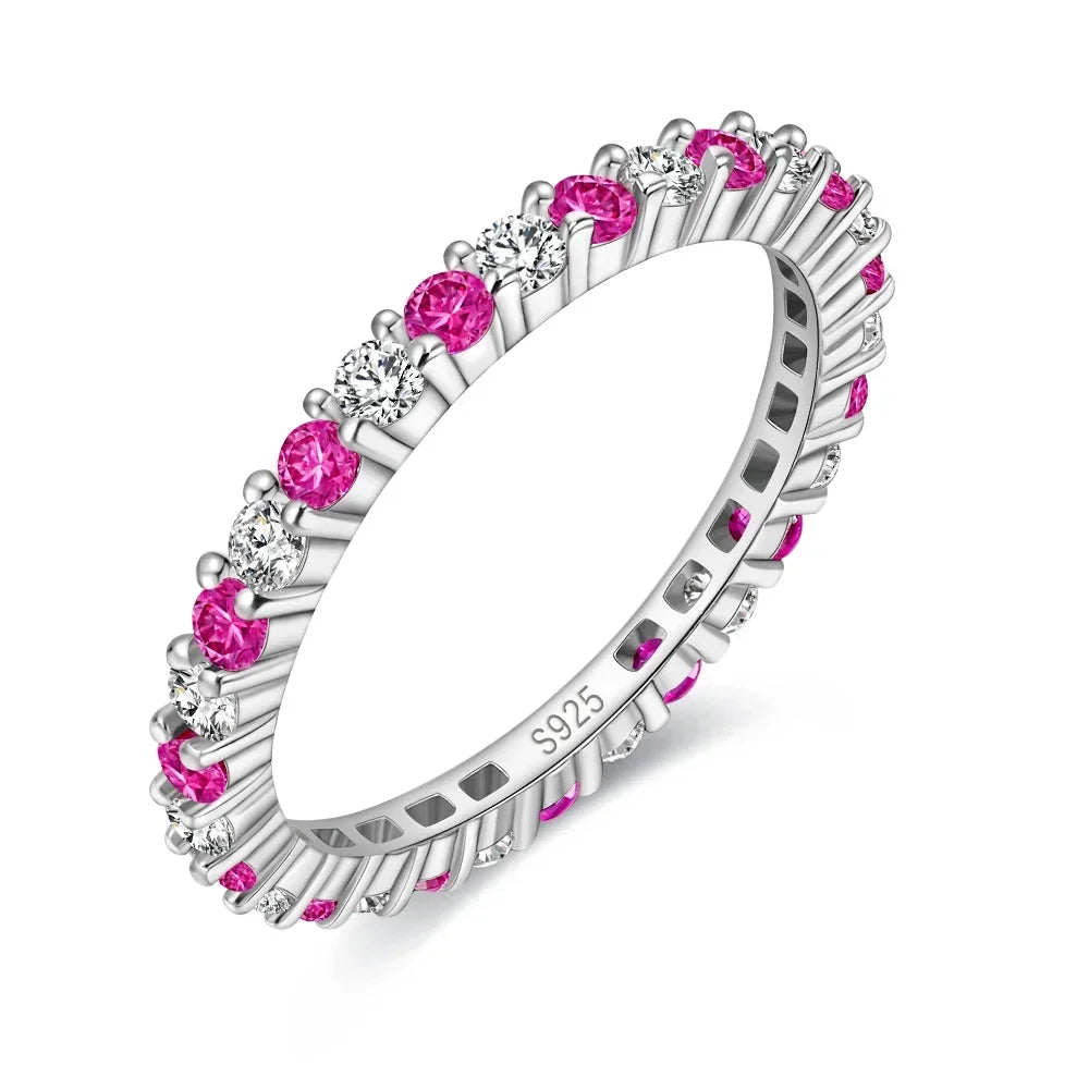 2mm Couple Promise Rings 925 Sterling Silver Rings for Women Emerald Sapphire Ruby Cubic Zircon 5A Gemstone Wedding Band Jewelry