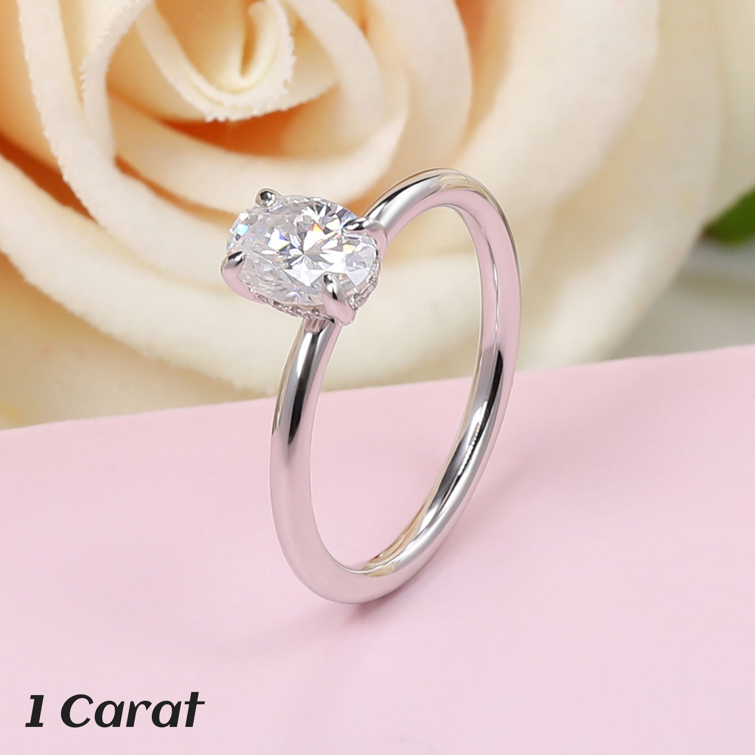 1 Carat Oval Cut Moissanite Engagement Ring for Women 925 Sterling Silver Solitaire Rings D Color Lab Created Diamond Promise Wedding Ring for Her