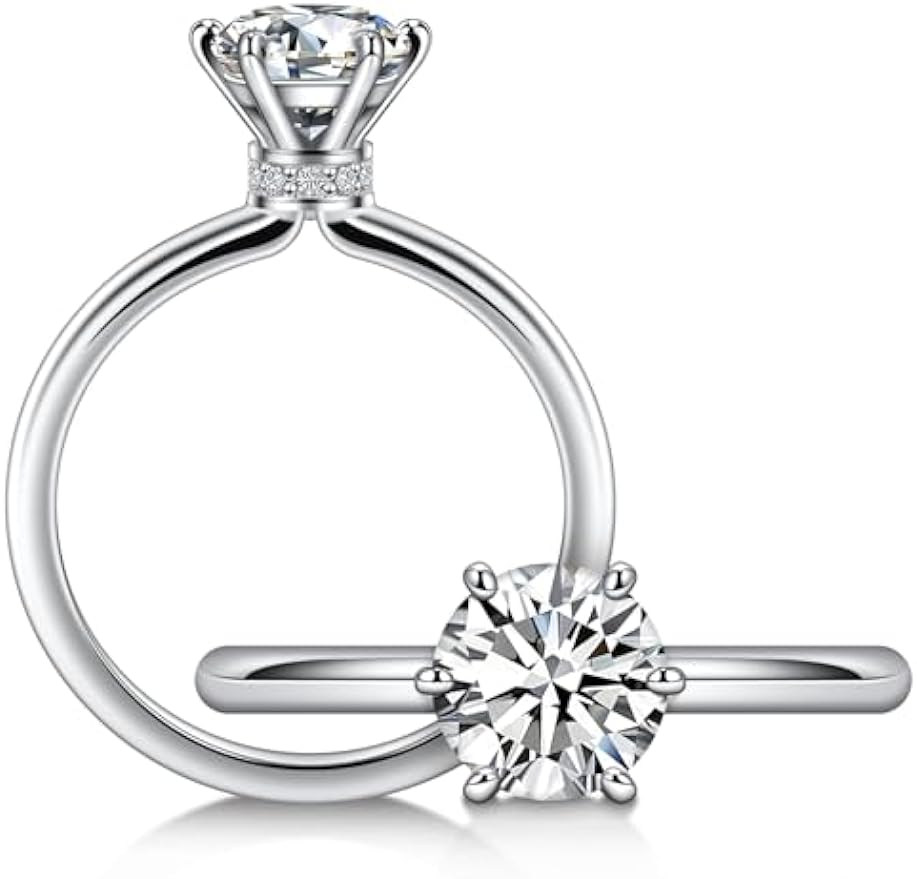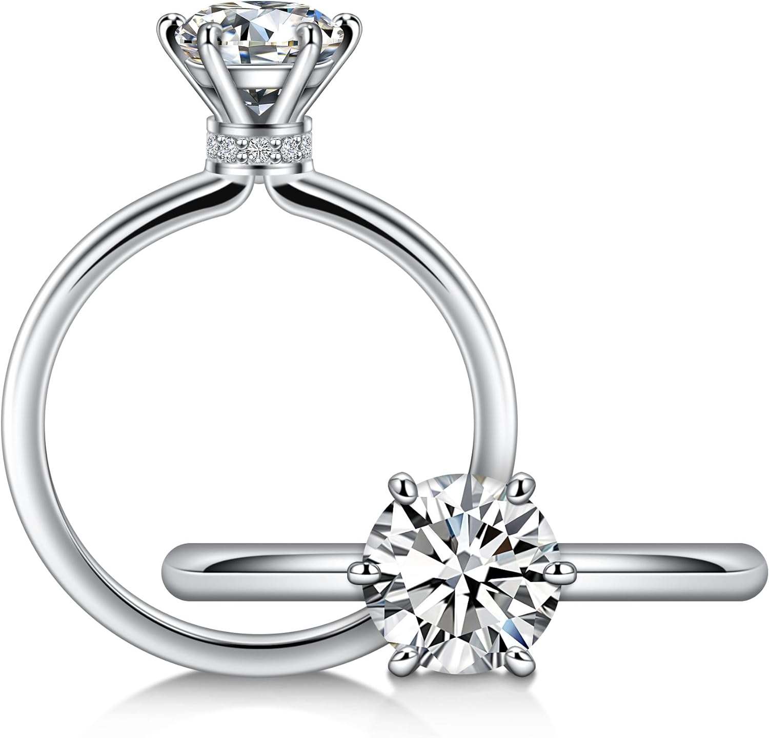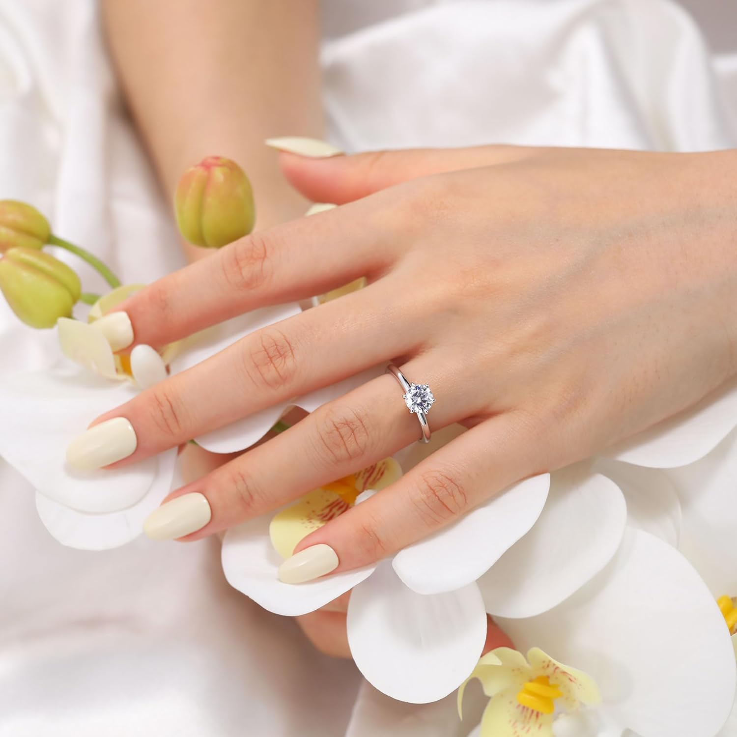 - 💎UNIQUE SYMBOLISM AND DESIGN: Claw setting is one of the few setting techniques that can maximize the beauty of this moissanite engagement ring. The engagement ring for women is simple and generous in design, yet flawless. The six claw solitaire ring signifies cherishing and love and willingness to treat each other like a princess. The six claw part and the ring arm is hollowed out, making it look more layered and more light intake, thus making the moissanite more sparkling.
