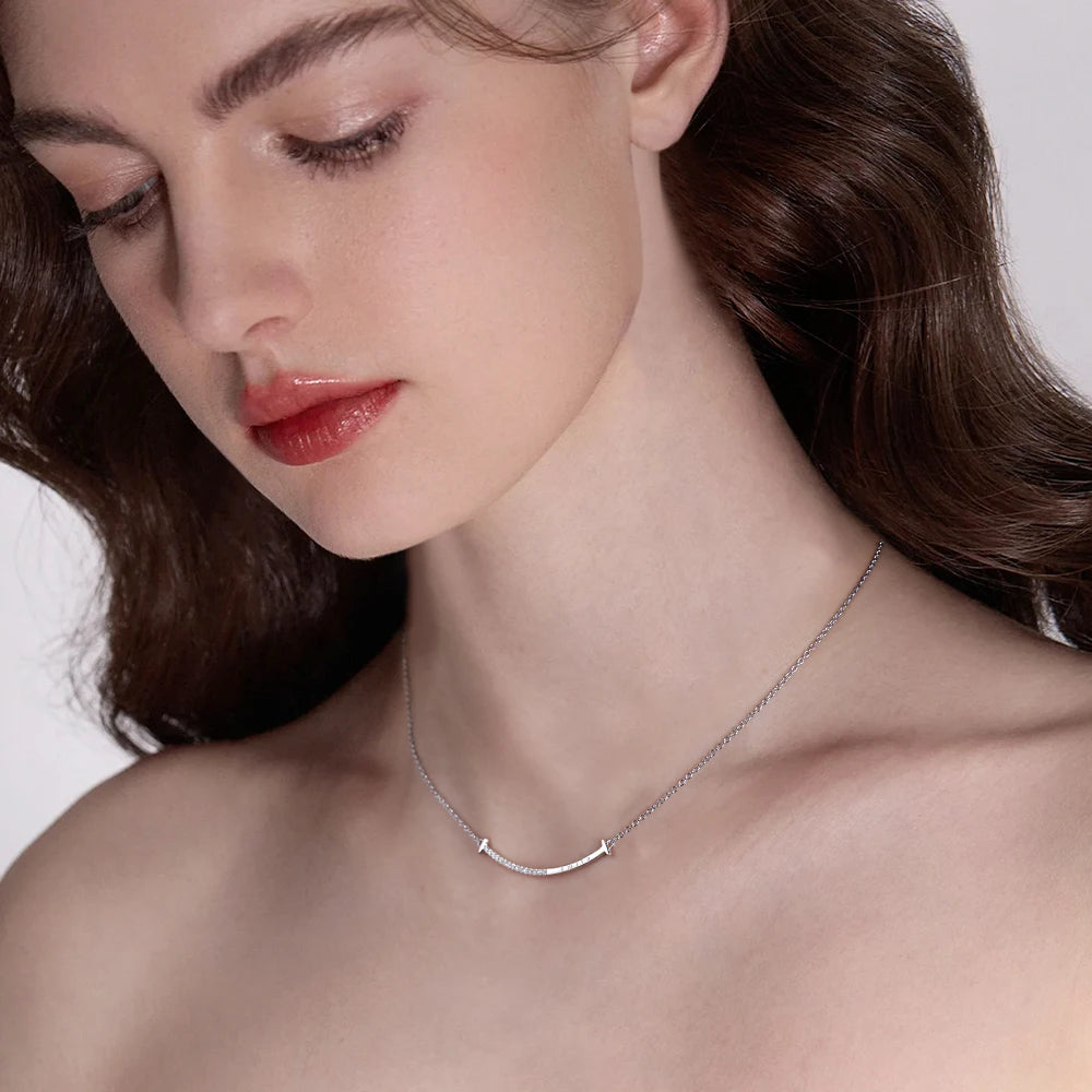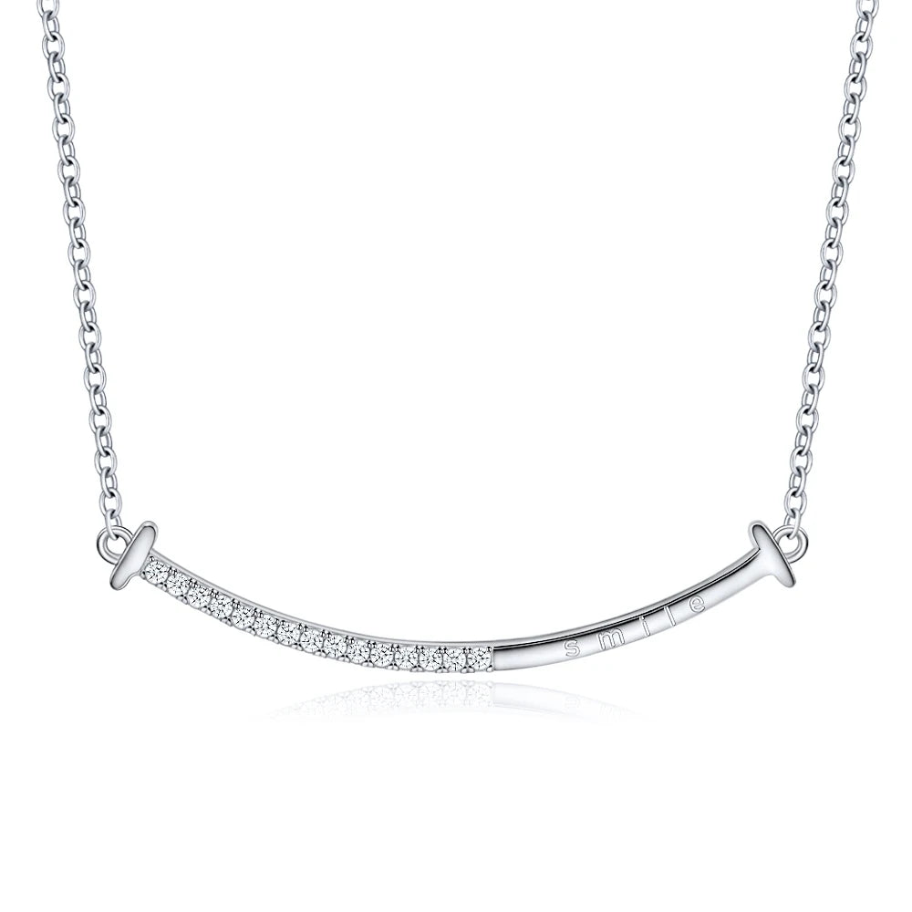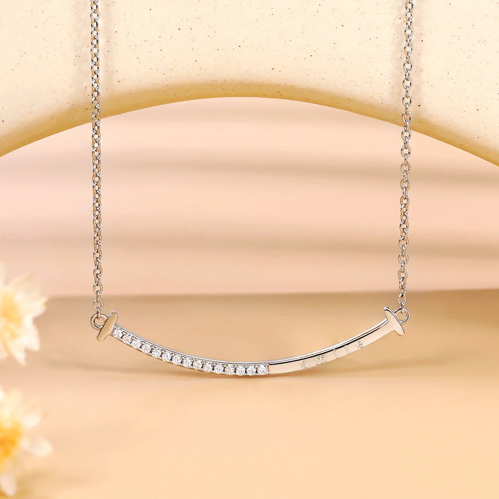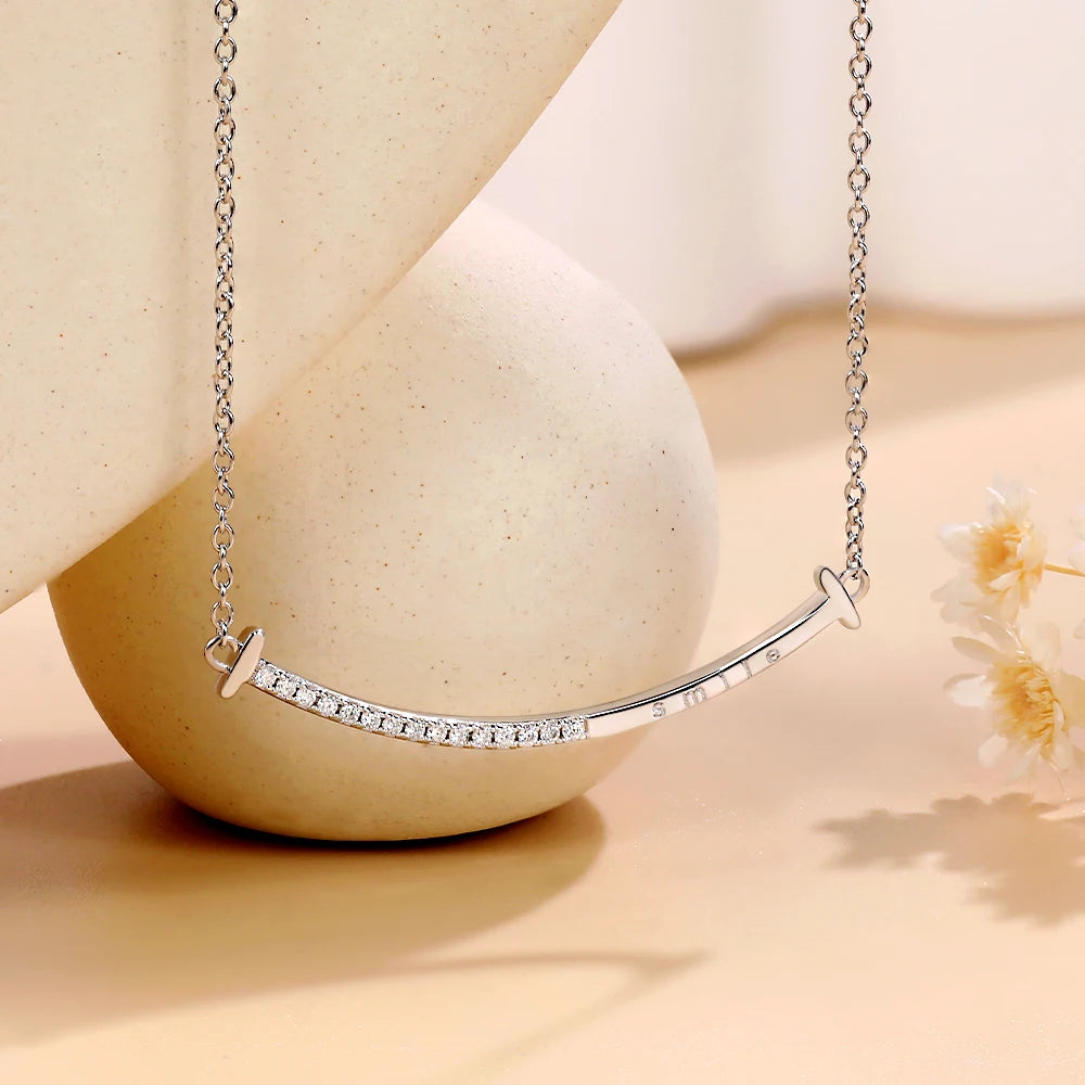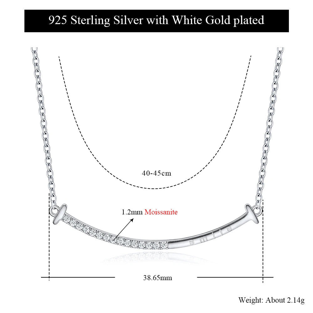 Full Moissanite Necklace Smile Pendant 925 Sterling Silver Chain 1.2mm Lab Diamond Necklace for Women Sparkling Jewelry