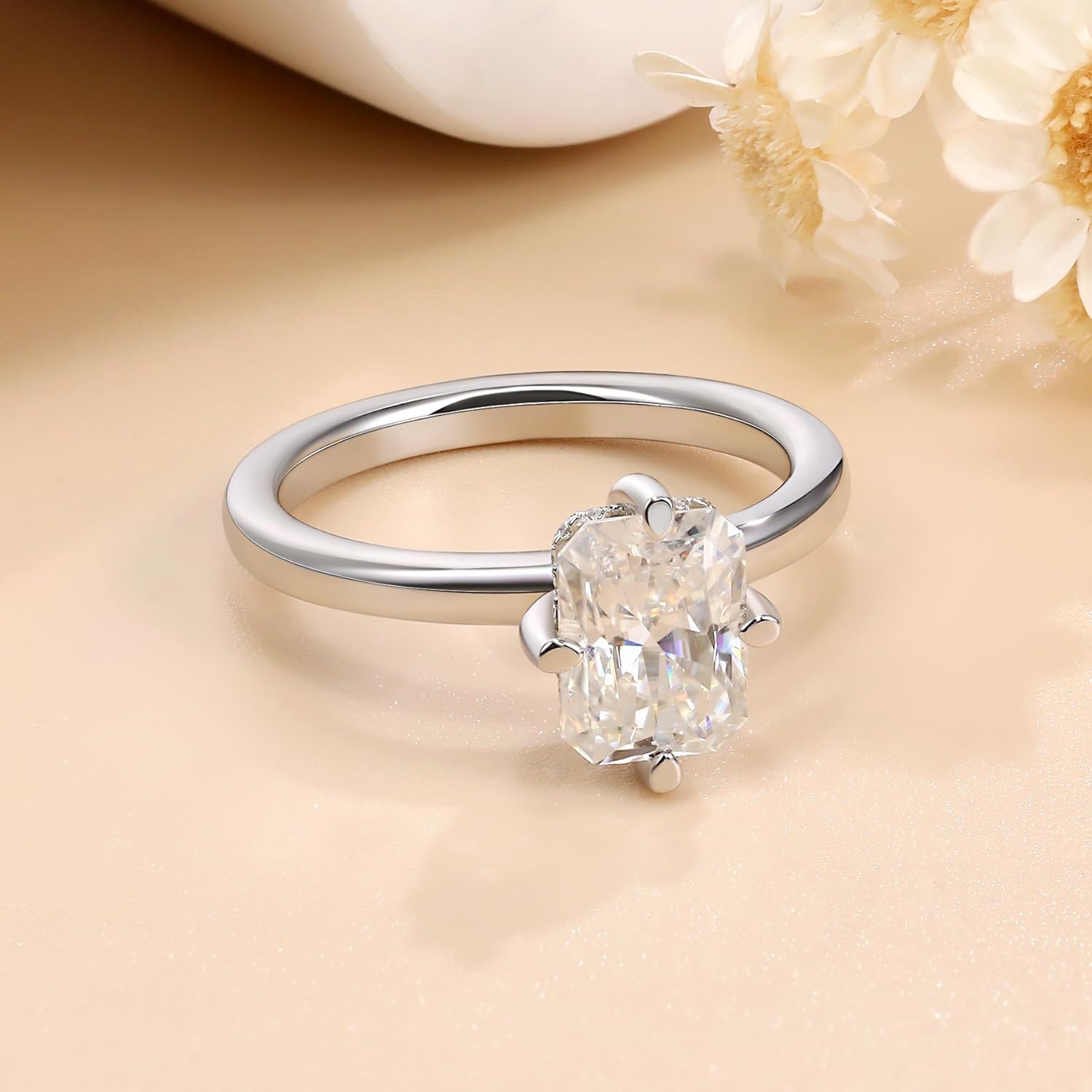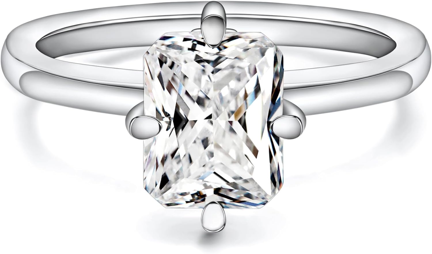 Moissanite Engagement Rings for Women 2ct Radiant Cut Sterling Silver 18k White Gold Plated Solitaire Promise Rings for Her Wedding Anniversary Bands for Women Size 4-11