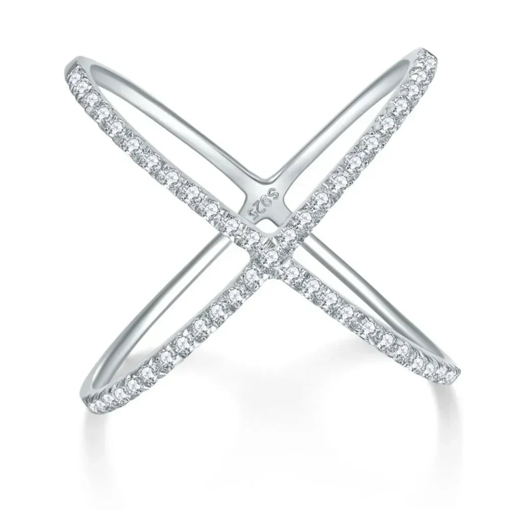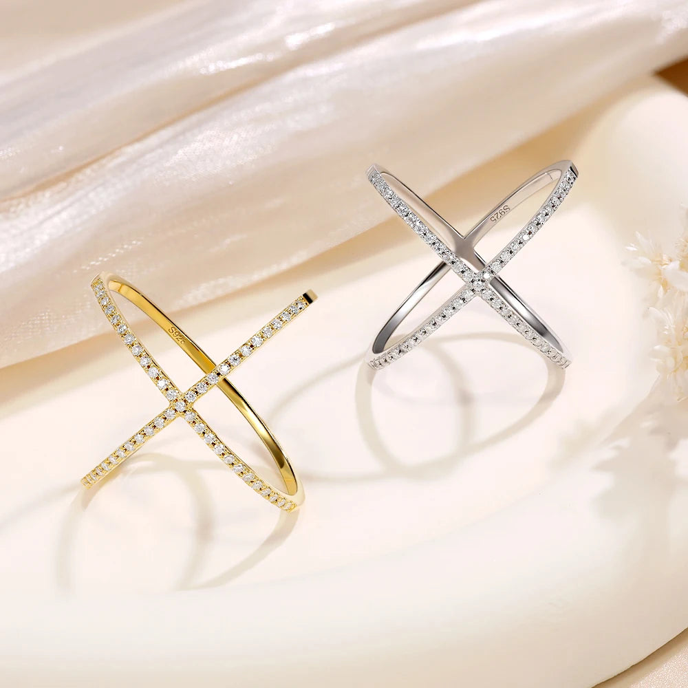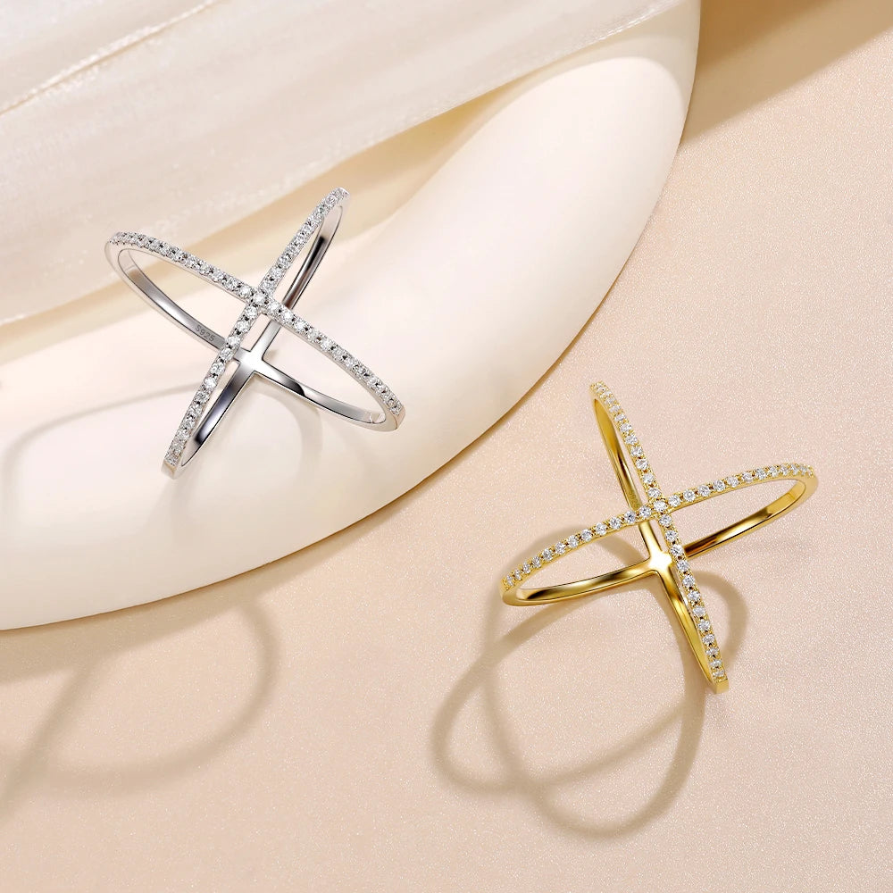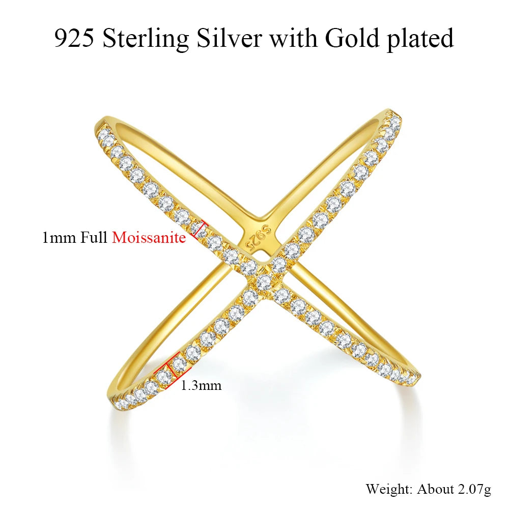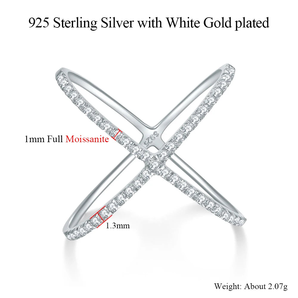 Moissanite Ring for Women 925 Sterling Silver Lab Diamond X Shape Full Eternity Wedding Band Round Cut D Color VVS1 Fine Jewelry