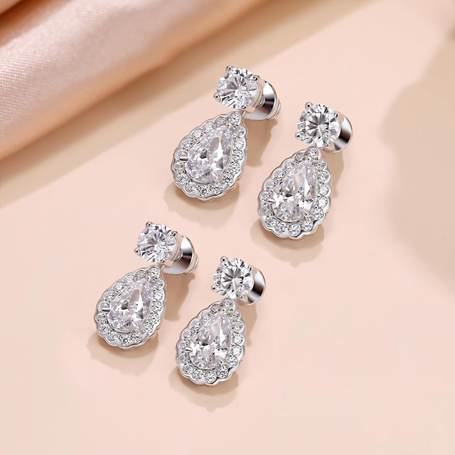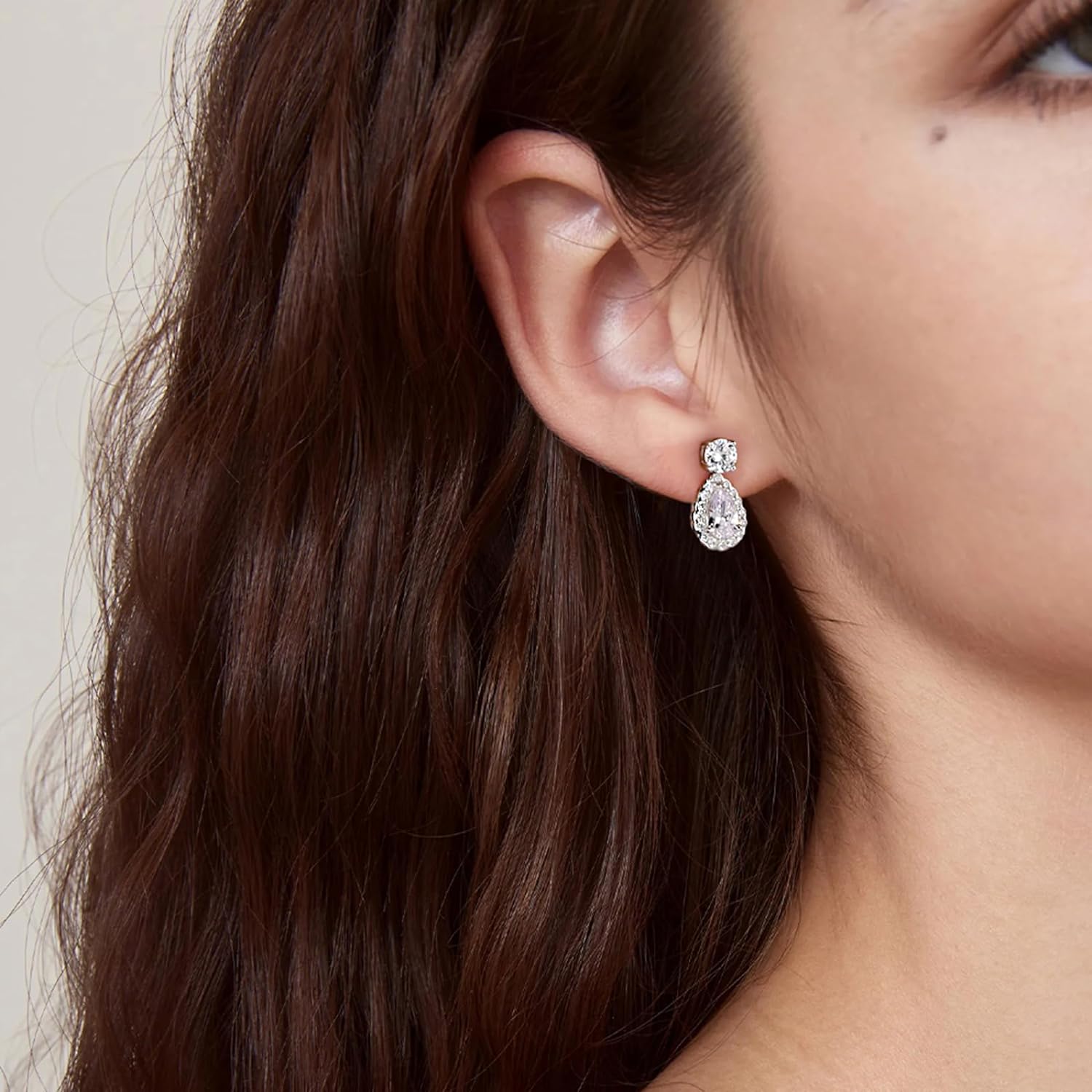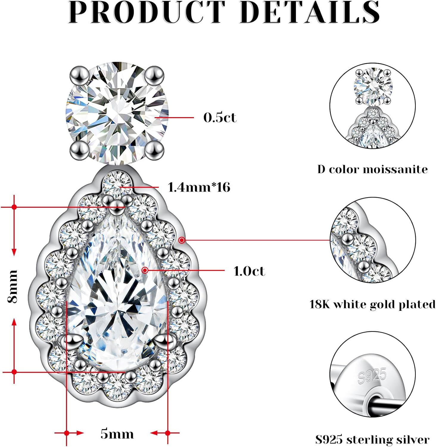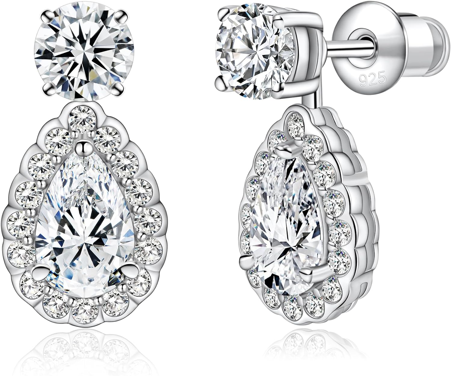 • Sterling Silver Teardrop Earrings: Crafted from high-quality 18K white gold-plated sterling silver, these round and pear-cut earrings ensure durability and quality. Our hypoallergenic earrings are a better choice for sensitive ears.