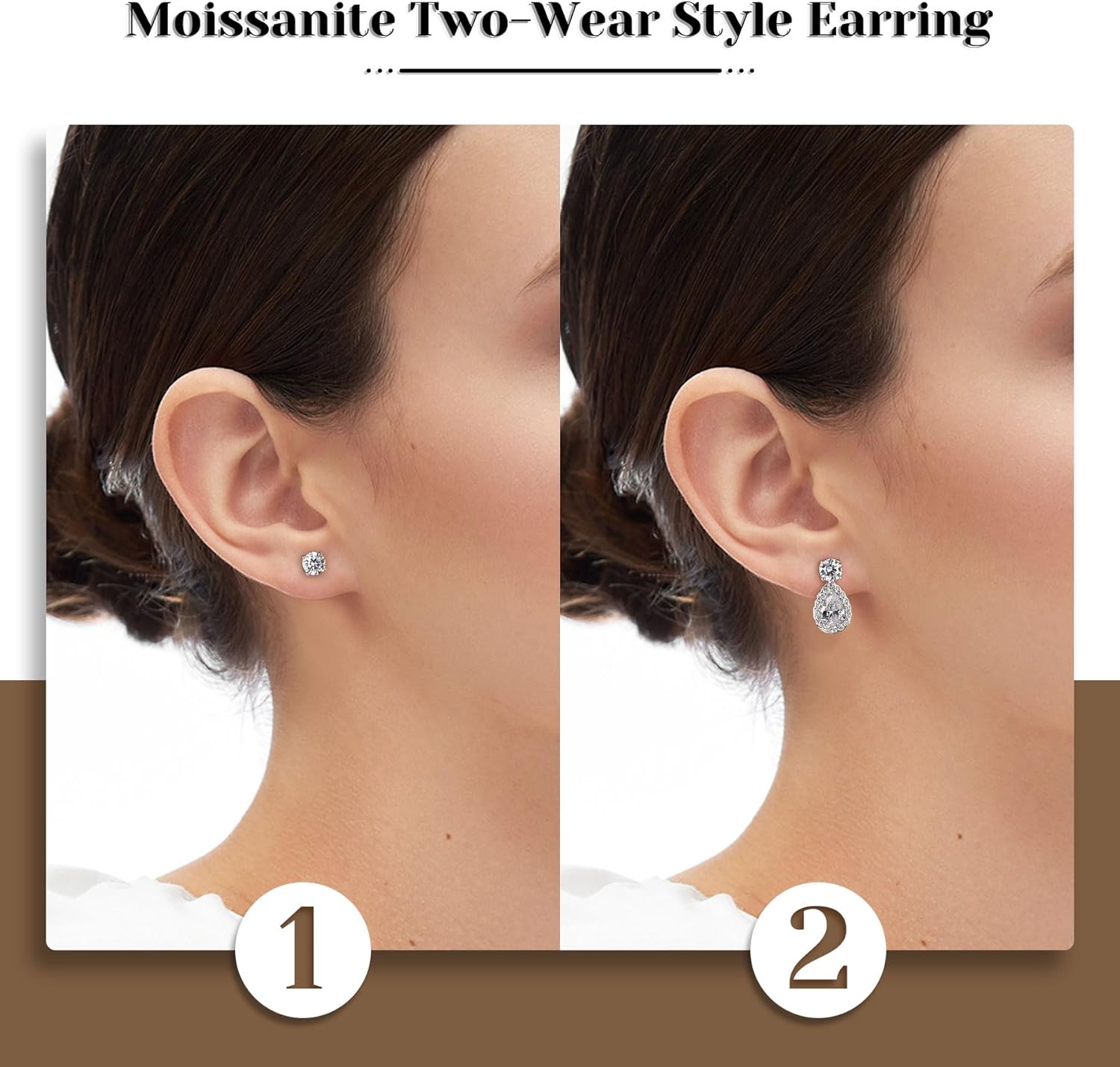 • Two-Wear Style Moissanite Earrings: These sparkling moissanite stud earrings offer two distinctive ways to wear them, allowing you to effortlessly switch styles for different occasions, whether for everyday wear or special occasions.